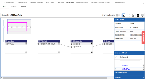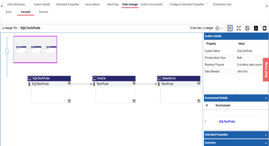 Lineage of a system shows how metadata moves through systems. It provides a summary of environments used as source and target. Also, it gives you information about the systems and environments involved in the lineage.