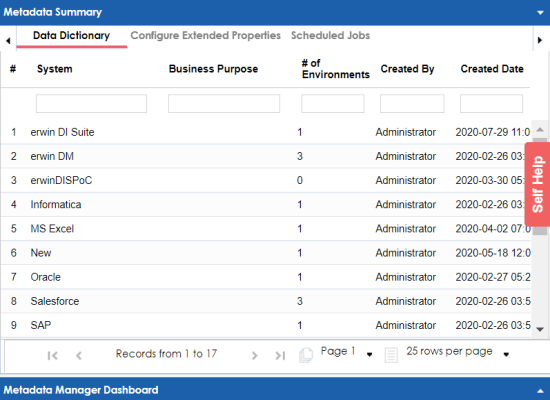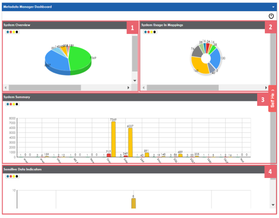 The Metadata Manager Dashboard displays metrics that help you analyze and track your metadata. It presents this information using charts and graphs.