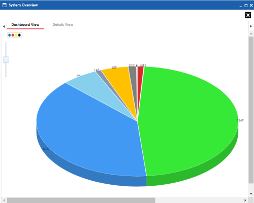 Each slice of the pie chart corresponds to a system. You can drill down and view detailed information in the list format.