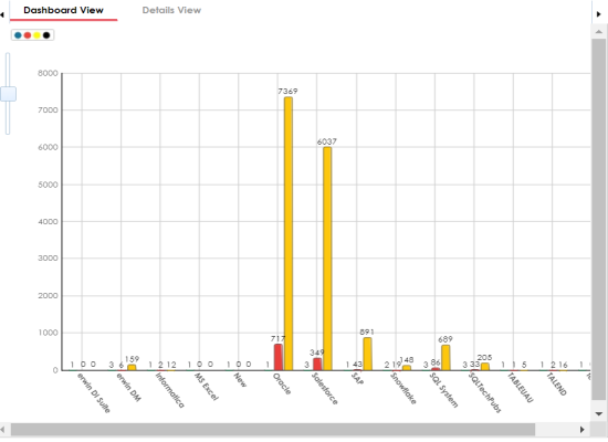 To view detailed information about a system, click a slice. The Details View tab opens. It includes system name, enviro-nment name, table name, and column name.