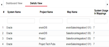 To view detailed information about a system, click a slice. The Details View tab opens. It displays system name, project name, map name, and system usage in mappings.