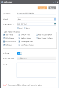 Enter a comma-separated list of email IDs that should receive email notifications about the scheduled job. For example, ab.dav@xyz.com, cal.kai@xyz.com |