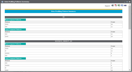 - To view data profiling pattern summary report, click Data Profiling Pattern Summary Report.
