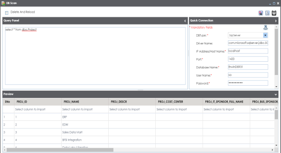 You can import reference data from a database to a reference table by connecting the database to the application. It involves adding columns to reference table and then importing column values from the database. For more information on adding columns to reference tables, refer to the Adding Columns to Reference Tables topic.