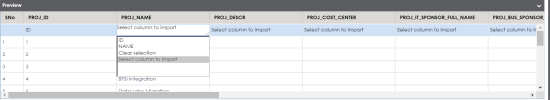 to preview the data. - Double-click the Select Column to Import cell under the required column.