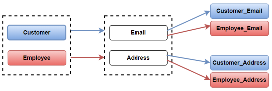 Similarly, you can define associations for Employee based on the diagram explained above and use it as a unique qualifier for its associations. To create association based on the diagram, follow the steps in Association Customer Using a Qualifier section.