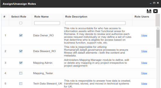 For example, the following Role Users page displays the users assigned to the Data Owner_RO role.