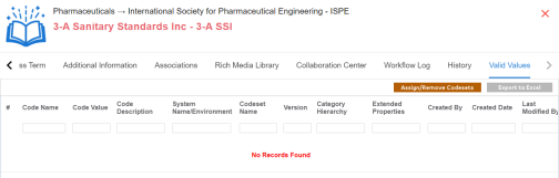 You can associate valid values (published codesets) to a business term. This enables you to maintain standard codes for business terms across the organization.