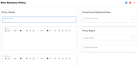 Business policies are globally defined set of enterprise-level principles. Using business policies, you can maintain business standards across your organization. You can create business policies in new or existing catalogs. For more information about catalogs, refer to the Creating Catalogs topic.
