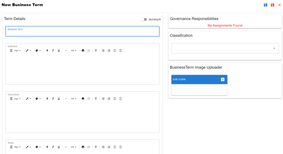 Once you create a business term, you can click a business term in the Business Term Summary pane to view it. You can enrich it further by: