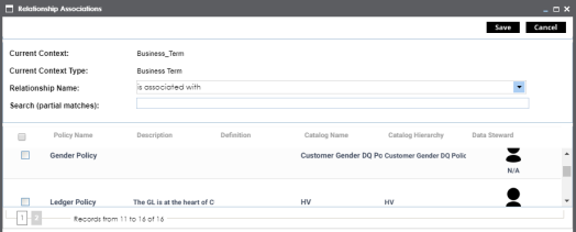 The Relationship Associations page appears. Based on the asset type that you select, it displays a list of available assets.