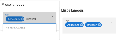 - For example, in the following image, a tag, "Irrigation", is created and assigned to a business rule.