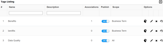 You can manage an enterprise tag using the options available under the Options column. Managing Enterprise Tags involves: