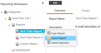 - In the Reporting Workspace pane, expand the Reports node, and right-click a report.