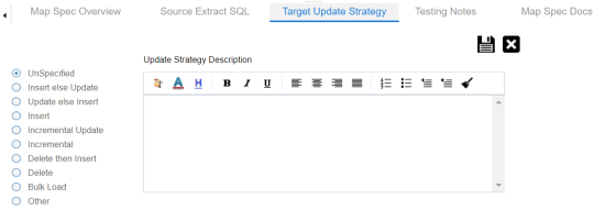 - Expand the Additional Mapping Information pane and click the Target Update Strategy tab.