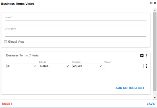 Custom Views provide quick access to the business asset data that you access frequently or data that you want to be readily available. You can create custom views for all business asset types using criteria sets based on your requirements.
