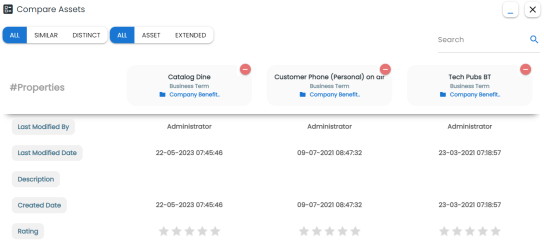 For more information about comparing assets based on properties, refer to the Comparing Business Assets topic.