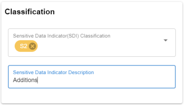 - Use this section to edit the SDI classification of a business term. For description of fields on this section, refer to the Creating Business Terms topic.