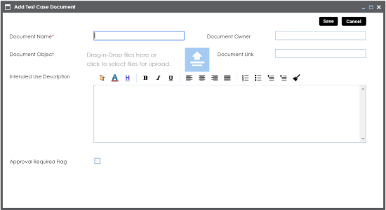 Specifies the name of the added document to the test case. For example, Source Metadata Details. |