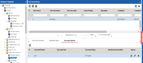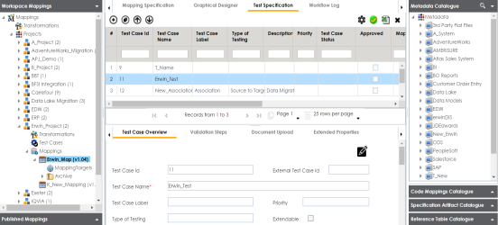 - In the Workspace Mappings pane, click a mapping and click the Test Cases node of a project.