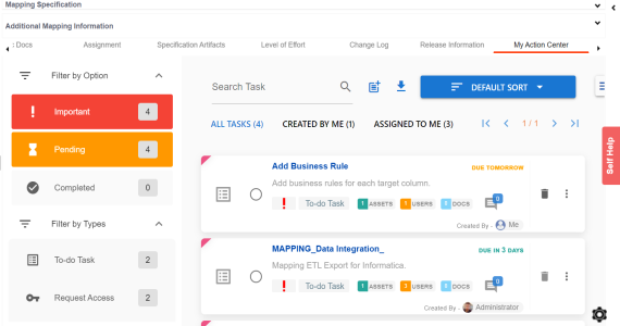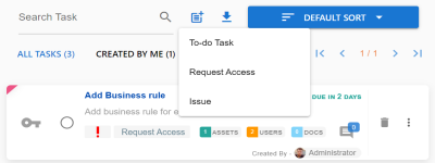 To collaborate on mappings you can create tasks depending on your requirement. By default, you can create to-do tasks, access requests, or issues. Apart from these task types, you can configure custom task types via Task Type Configuration.