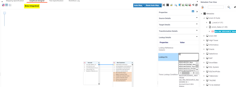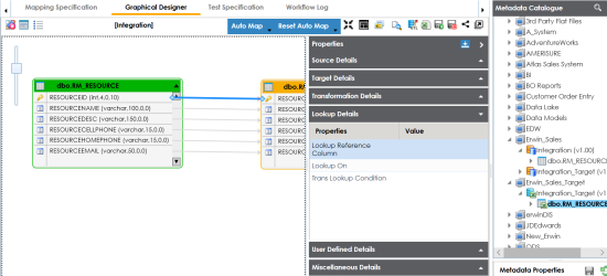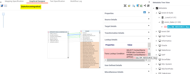 - Drag the required table from the Metadata Tree View pane and drop it for Trans Lookup Condition.