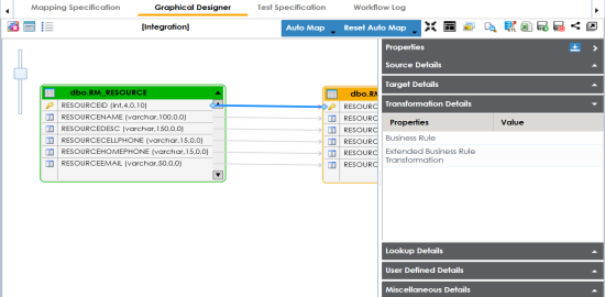- Click the mapping link of the required column and expand the Transformation Details pane.