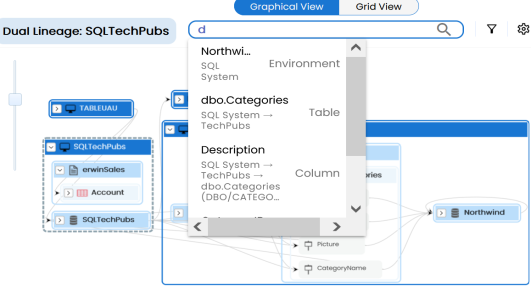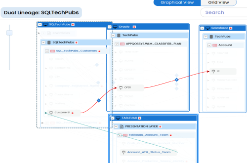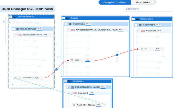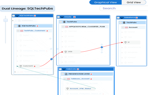 - Dual - Combined View: Use this option to view forward and reverse lineage of the column combined together.