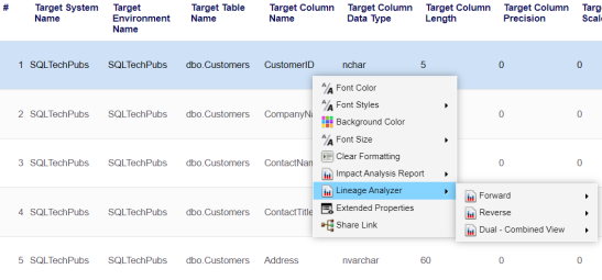 - Right-click a column and hover over Lineage Analyzer.