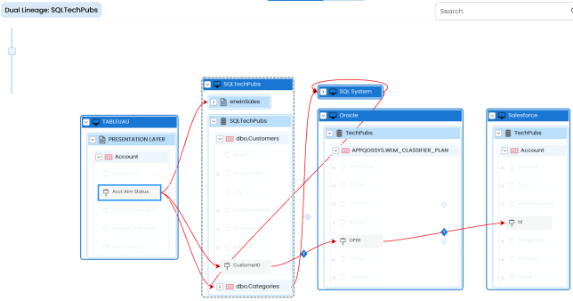 Use this option to view expanded logical names of the tables and columns in an environment in the lineage. You can expand a system node to view environments, tables, and columns. or more information on configuring extended properties of columns, refer to the Column topic.