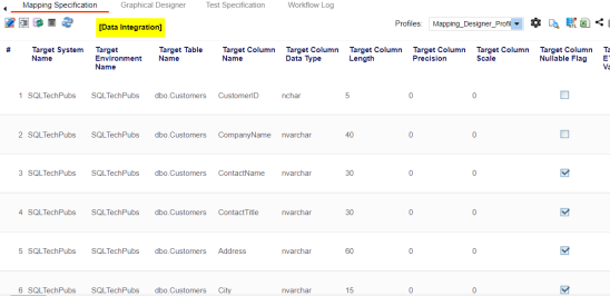 The Mapping Specification grid appears.
