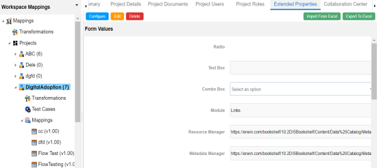 You can download extended properties in the XLSX format and use it as a template to import extended properties. To download extended properties, on the Extended Properties tab, click Export To Excel.