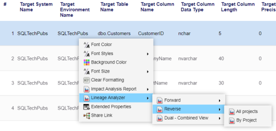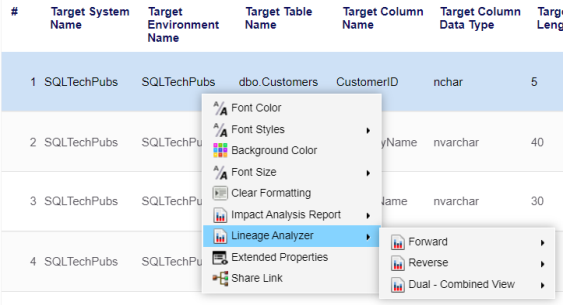 You can run forward and reverse lineage analysis to trace metadata at the environment level. Forward lineage analysis generates lineage with the environment as source. And, reverse lineage analysis generates lineage with the environment as target. The Dual-Combined View lineage analysis generates a lineage, which includes both forward and reverse lineage.
