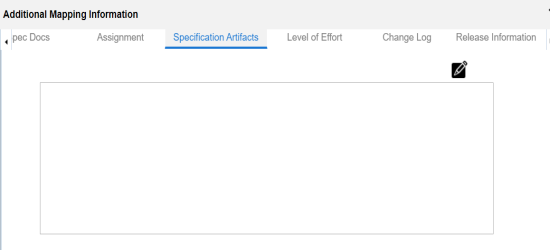- In the Additional Information pane, click the Specification Artifacts tab.