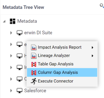 4. In the Metadata Tree View pane, you can right-click a: