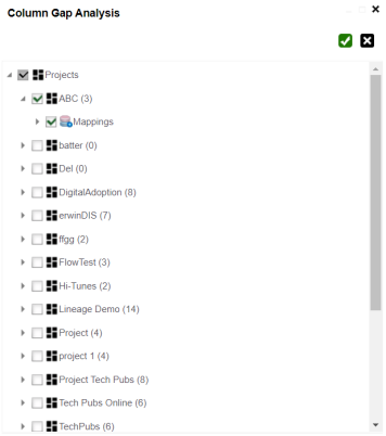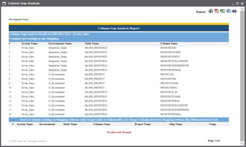 9. The Column Gap Analysis Report for the selected projects and mappings appears.