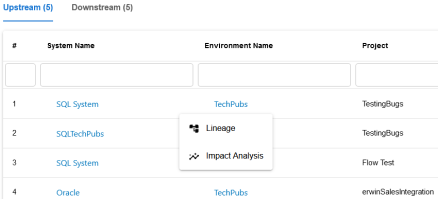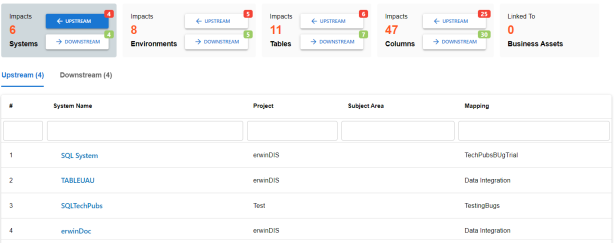 This topic walks you through the steps to view impact analysis of environments. Similarly, you can view impact of systems, tables, and columns.
