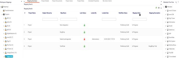 - Select projects and mappings.