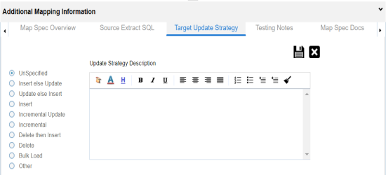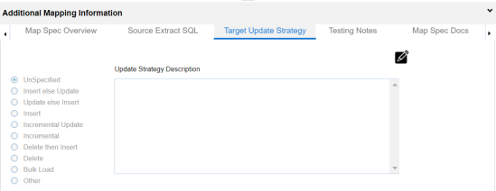 - In the Additional Mapping Information pane, click the Target Update Strategy tab.
