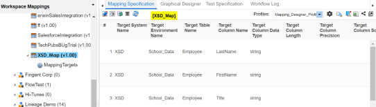 By default, it opens the Mapping Specification tab.
