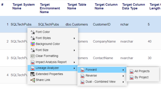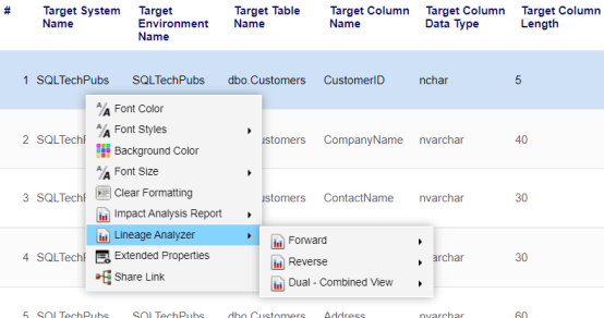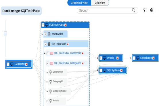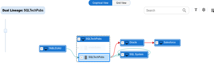 You can run forward and reverse lineage analysis to trace metadata at the system level. Forward lineage analysis generates lineage with the system as source. And, reverse lineage analysis generates lineage with the system as target. The Dual-Combined View lineage analysis generates a lineage, which includes both forward and reverse lineage.