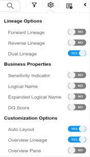 Use this option to view lineage types, business properties, and customizations options. For more information on lineage options, refer to the Working on Lineage section.