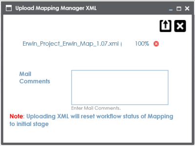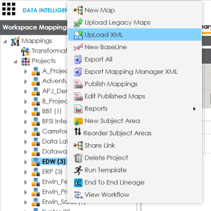 You can upload a mapping specification to a project in the XML format. You can either use an existing XML file or export it from a suitable project. Ensure that the XML file follows the correct template. For more information on exporting a mapping specification in XML, refer to the Proprietary XML Format topic.