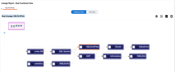 For example, the following image displays dual lineage of a system, SQLTechPubs.