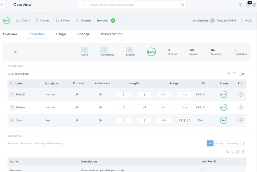 - Click the Properties tab to view a list of all attributes and DQ scores.