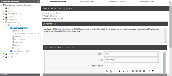 A child artifact is saved and added to the artifact tree. You can view the child artifact on the Specification Overview tab.