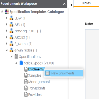 To create better structured specifications and to enrich them further, you can create multiple child artifacts under an artifact.