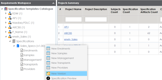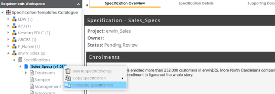 You can create versions of a specification, and maintain one working version and archive the older versions for reference. You can also compare any two versions of the specifications to view differences.