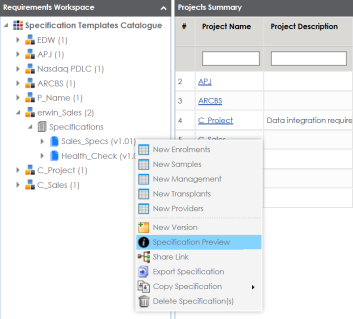 Use this option to create specification versions. You can maintain one working version and archive older versions for reference. For more information, refer to the Creating Specification Versions topic.