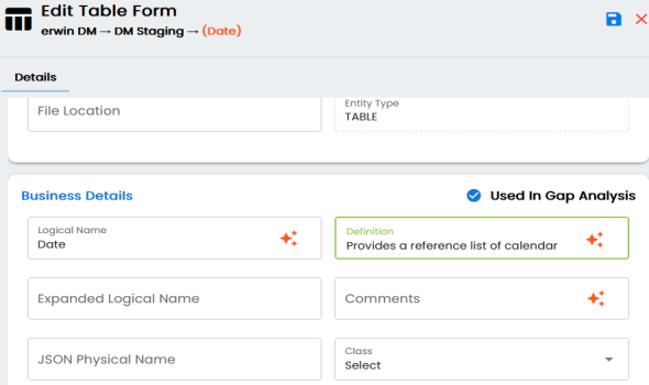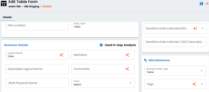 For example, the following steps show how to use erwinAI Inline Assist for table properties. Similarly, you can use it for columns in Metadata Manager.